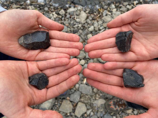 Image 5: Four of the stone tools discovered at the Glencar Lake Knapping Floor Site.