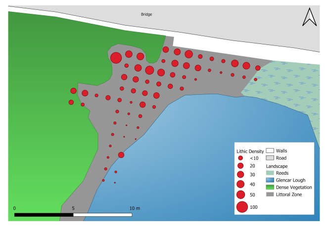 Image 9: A distribution plot of lithic frequency found at Glencar Lake.