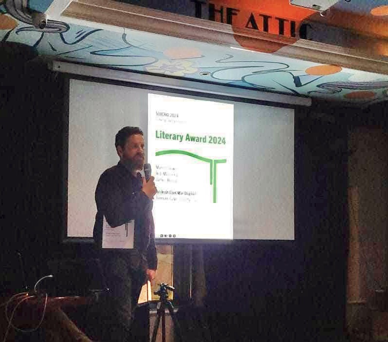 The award was presented on Sunday 27 October 2024 at SUICRO’s Caving Symposium in Doolin, Co. Clare. Each of the three authors—Dr. Marion Dowd, Robert Mulraney, and Dr. James Bonsall—received an individual framed certificate in recognition of their outstanding contribution to both cave studies and Irish history, with Robert Mulraney accepting the award on behalf of the research team.